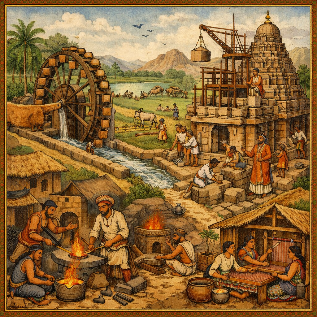 In conclusion, the centuries between 800 and 1200 CE witnessed significant technological developments in agriculture, irrigation, metallurgy, architecture, textiles, and maritime activity. These developments were closely connected to the expansion of agrarian production, the growth of craft industries, and the increasing integration of India into wider networks of trade and exchange. As historians such as Kosambi, Sharma, Chattopadhyaya, Stein, and Habib have demonstrated, technological change in early medieval India cannot be understood in isolation from the social structures and economic processes that shaped it. Instead, technology formed an integral part of the evolving relationship between society, environment, and production in early medieval South Asia.