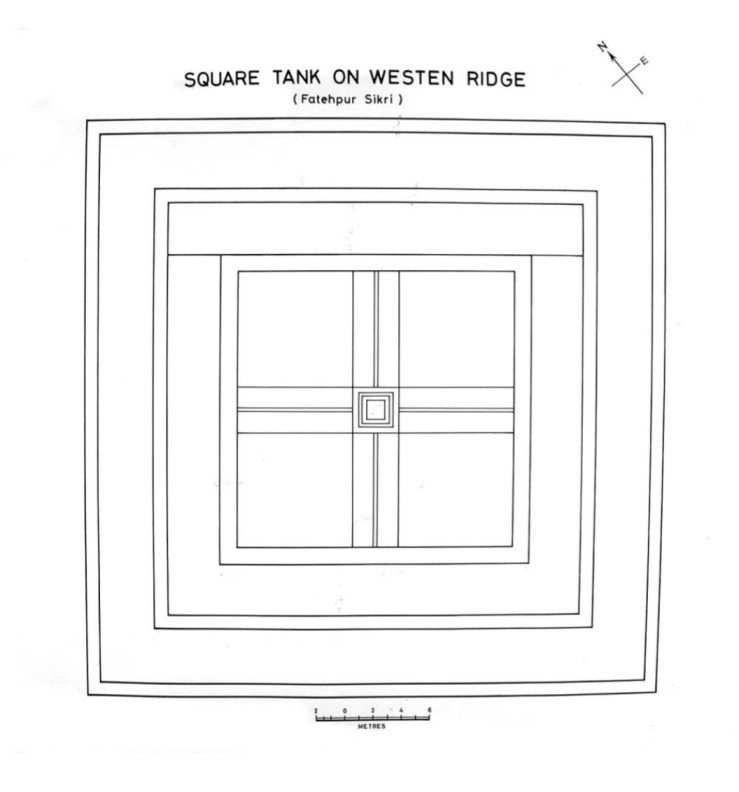 Similar harvesting of rain-water appears to have been resorted to in the Jāmi’ Masjid Complex. The water “falling on the floor of the Mosque as well as the Tomb of Shaikh Salim Chishti was collected in two underground covered water-tanks (birka) one of which was constructed by the walling up of the vaults forming the courtyard of this