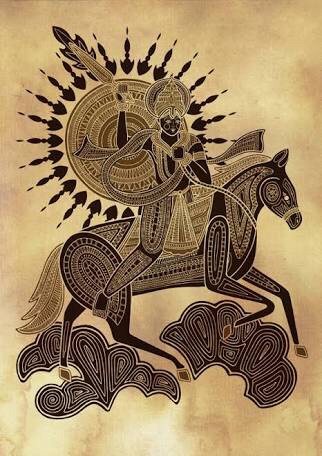 Similarly in the Vedantic Brahmanic belief, when the end of the world nears and the evil pervades all over, Kalkin, the 10th avatar of Lord Vishnu would appear. Riding a horse and a sword in hand, he would defeat the evil and establish the rule of Brahma.