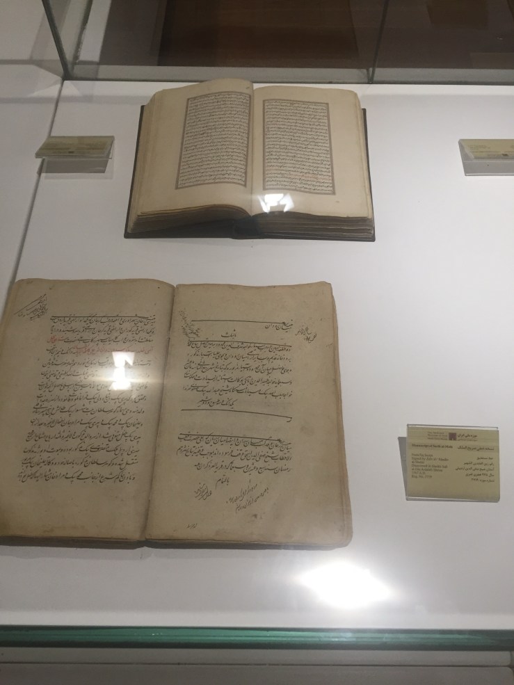 It contains various pieces of pottery, textiles, texts, artworks, astrolabes, and adobe calligraphy, from Iran’s post-classical era. It contains material remains from early Islamic period, specially from the 17th Century onwards.