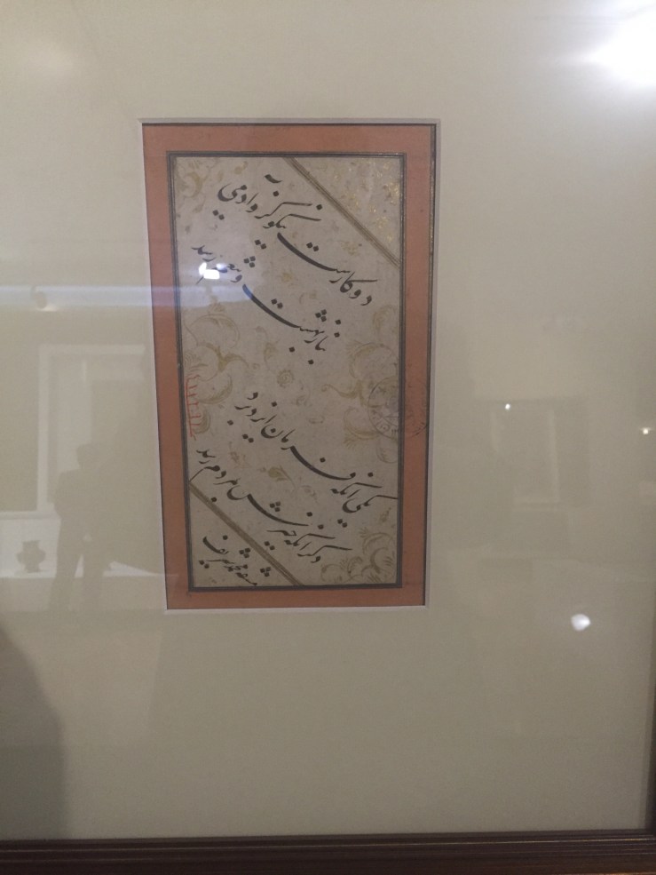 Apart from Safavid period, the Qachar period is well represented. The Pahlavi artefacts are conspicuously elusive! So is the case of any artefacts related with Iran’s relations with the Mughal of India!