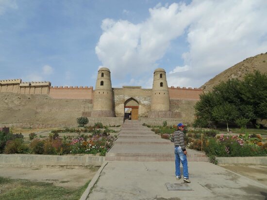 During our stay in Dushanbe we were also taken for a day trip to a site of an old city Hisor. It has the ruins of a fort, a madrasah and a few tombs. This ancient city was once an independent Khanate, and then the winter residence of the governor of East Bukhara. The large fort situated on a hill above the city is said to date back to Cyrus the Great and to have been captured twenty one times.