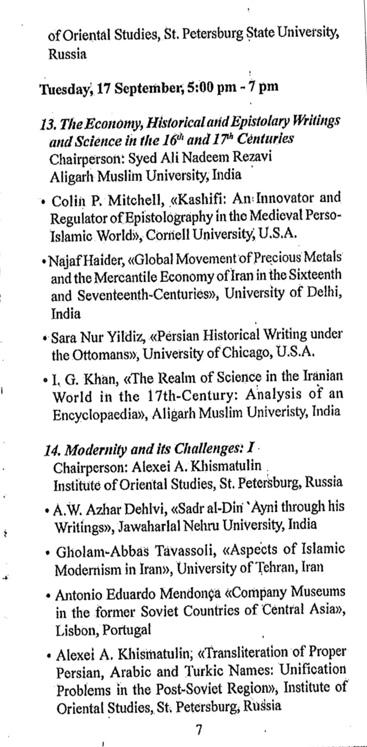 There was a team of around half a dozen scholars who were supposed to attend from India: Professor Azhar Dehlavi, Professor Azarmi Dukht, Professor Ishtiyaq A Zilli, Dr Najaf Haider, Dr I G Khan, Dr Muhammad Sharfe Alam and Dr Asif Naeem Siddiqui. Then there were scholars from US, UK, Iran, Armenia, Azerbaijan etc