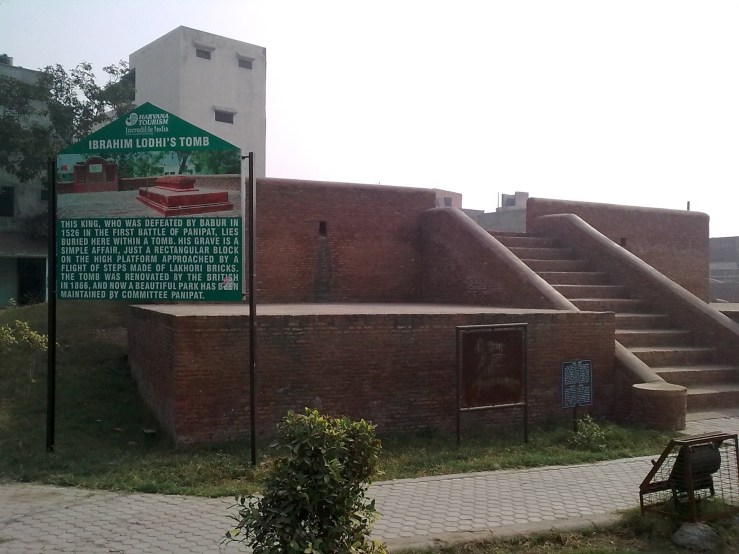 After the battle of Panipat, Ibrahim Lodi was buried near the battlefield itself. His tomb survived till the Colonial period. At the time when the Grant Trunk Road was being built by the British, the tomb was shifted to its present location.