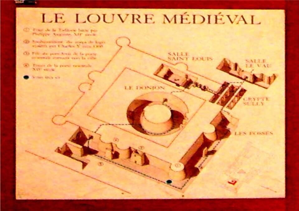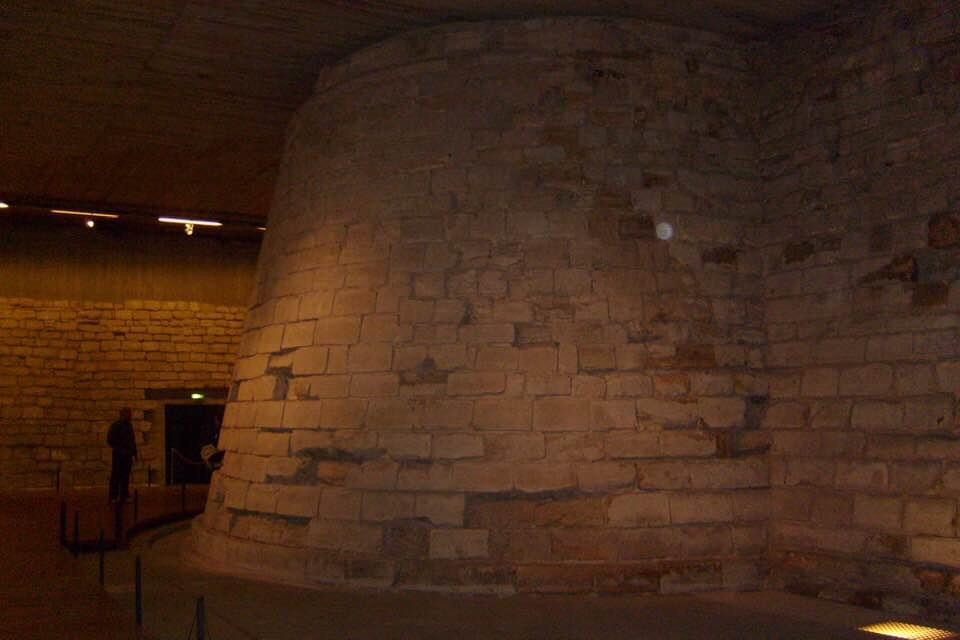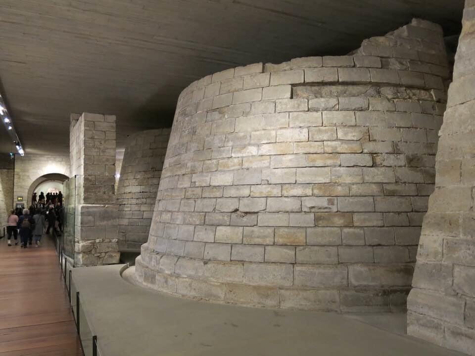 Below the Coeur Carré of the Musée de Louvre are the remains of the Medieval walls and dungeons of the Louvre Palace. These are the walls and bastions of the original Palais du Louvre over which the later structures and the subsequent museum was built.