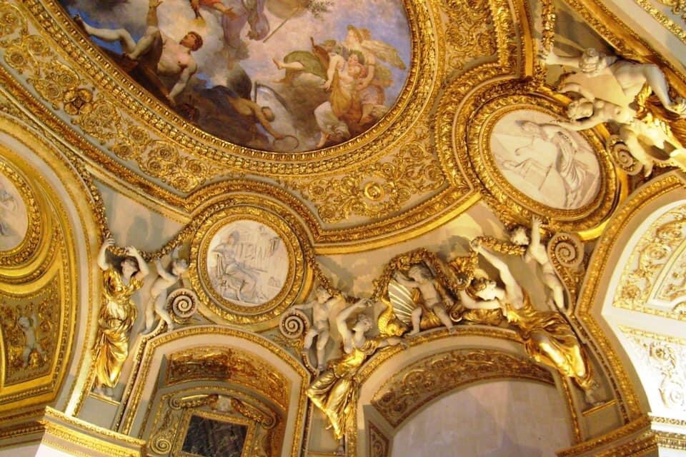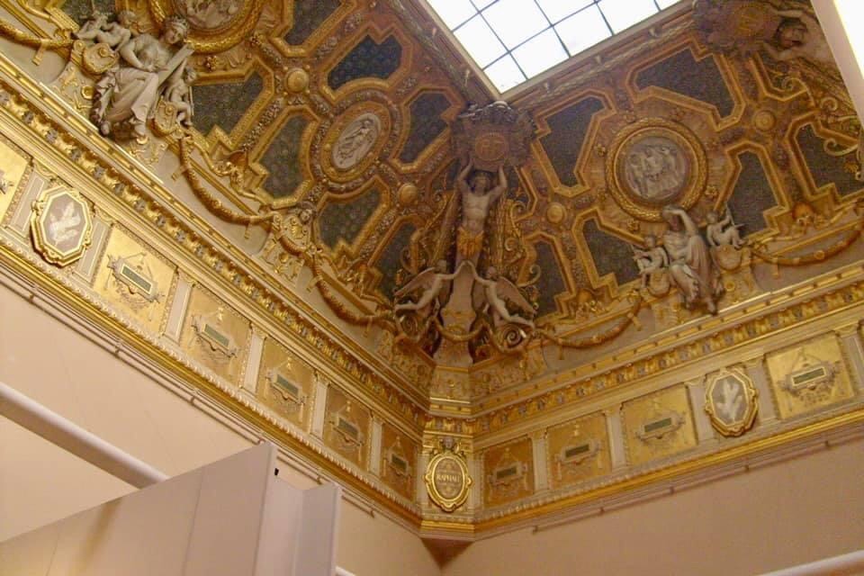 One can go on and on: the Louvre, after all, is one of the largest Museum of the World! However we will end this tour with some examples of the exquisite ceilings of the Louvre Palace Museum. Here are just a few examples: