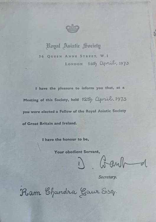 Ram Chandra Gaur, archaeologist and historian, was born on 4 July 1929 at Faizabad, U.P. Losing his father when he was 14 and being the eldest among his brothers, he pursued his higher studies under difficult circumstances. Gold medallist at his B.A. examination, Allahabad University, he passed his M.A. in Ancient Indian History and Greater India, in 1952. He worked as Assistant Archaeologist, and Curator at the State Museum, Lucknow, 1955-58, during which he made a survey of the medieval site of Kara.