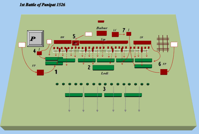 The genius of Babur lay in the manner in which he used his artillery, his handgun-men, the tufungchis at Panipat and Kanwa. He ensured their safety of his canons & tufungchis to the same extent to which it would be ensured from the ramparts of fortifications. It also did not hamper the movement of his cavalry.